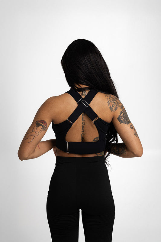 The adjustable straps on the bra makes sure it sits comfortably on your shoulders and under your bust and the criss cross back design provides great support.