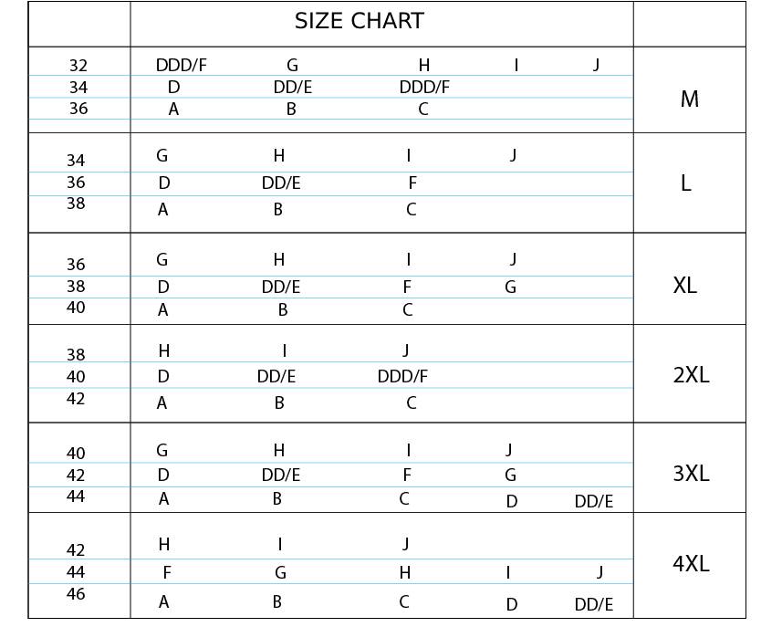 • If you know what your bra size is for example “32H”, trace that to the Luxxefit Size Chart attached below , which would be the equivalent of a size “Medium”.